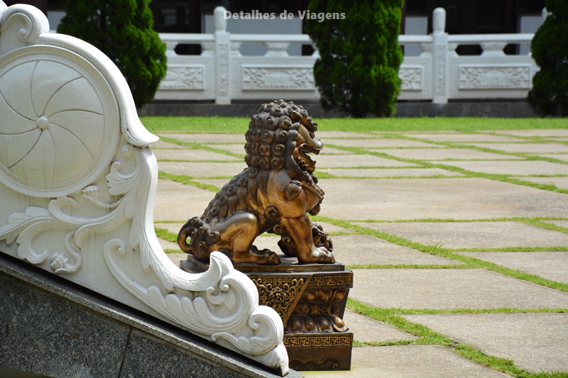 O lugar é bem amplo. Caminhando ao redor do templo, encontra-se um bonito jardim e um lago, com carpas e tartarugas. Aos domingos, acontecem cerimônias às 10h, o que tornou o passeio ainda melhor. Não entendíamos o que estava sendo falado, mas era gostoso ouvir a recitação em chinês de mantras e sutras enquanto caminhávamos pelo jardim.