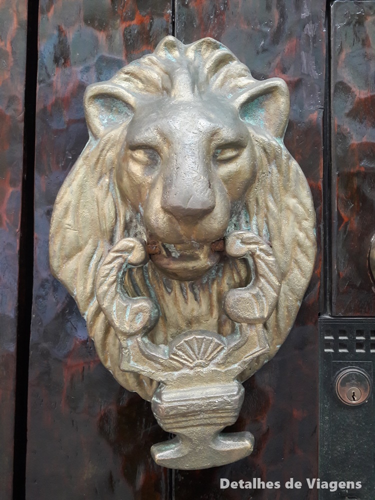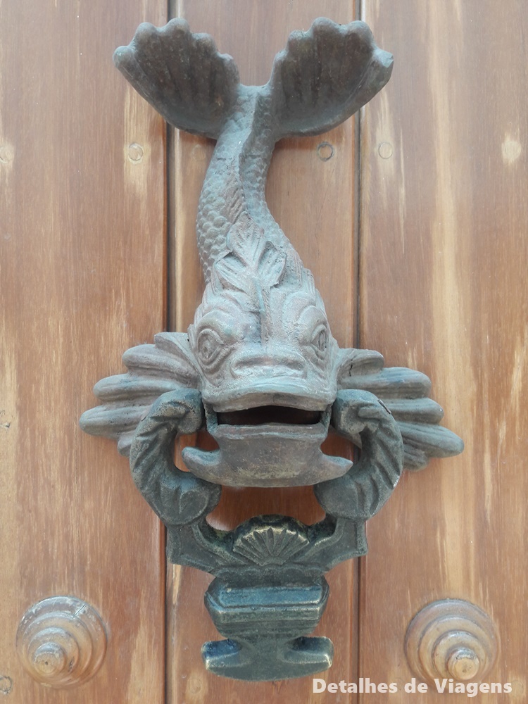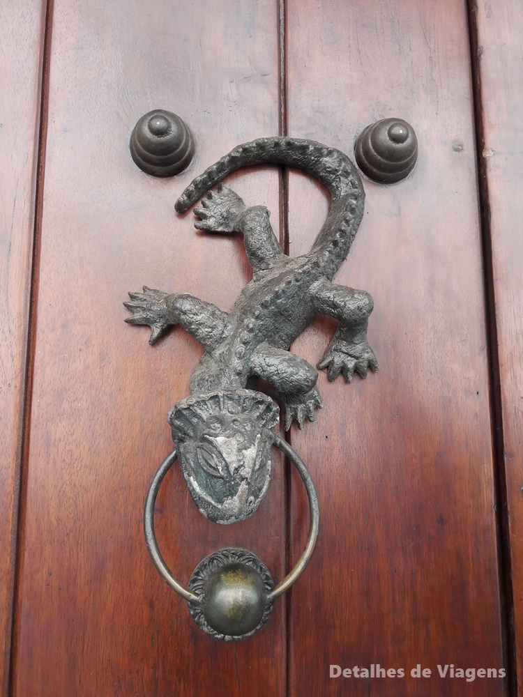 Cada batedor de porta identificava a profissão dos moradores da casa: leão para militares, lagartos para nobreza, peixes para comerciantes etc. Fiz uma coleção de fotos! rs